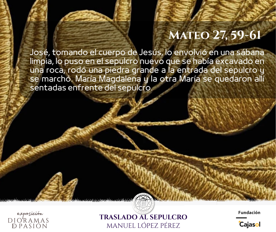 Nuestra Asociación tiene el gran honor de participar en esta exposición con una muestra de Dioramas de Pasión realizada por diversos compañeros, que con la magia de sus manos han logrado plasmar diversas escenas de la Semana Santa.